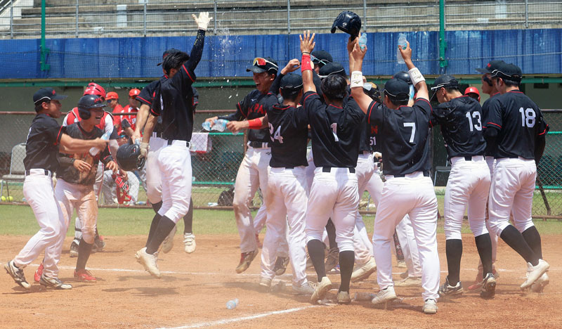 いきなり先制ツーランを浴び、「今大会初失点」という「想定外」の試合展開となったが……慌てず騒がず逆転し、最後は5回コールド勝ち! 「全勝」でアジアを制したU23大学男子日本代表