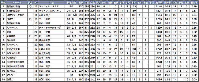 11位チームは11月4日(木)〜6日(土)・滋賀県長浜市県立長浜ドームで開催される入替戦に出場する。(女子リーグ2部2位チームと3回戦)