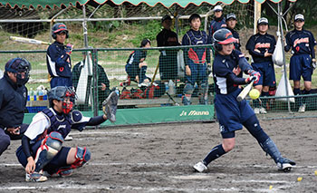 「2017 SOFT JAPAN WINTER CAMP in 沖縄」3日目(12月20日/水)、この日は朝から女子はGEM2とGEM1がテストマッチ。GEM1のみ、投球距離(投手板から本塁までの距離)が12.19mと短いこともあって、GEM2はタイミングを取るのに四苦八苦。逆にGEM1がGEM2が誇る「MAX100km/h超」の投手陣から3点を奪い、3-2で「大金星」を挙げる「下克上」を演じて見せた。